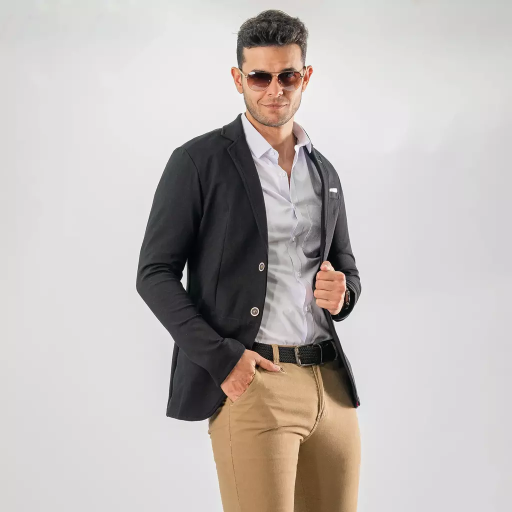 Su corte slim fit está diseñado para realzar la silueta, ofreciendo un ajuste impecable y sofisticado. Perfecto para combinar con pantalones de vestir o chinos, este blazer es ideal para eventos formales o reuniones de trabajo donde deseas proyectar seguridad y buen gusto.