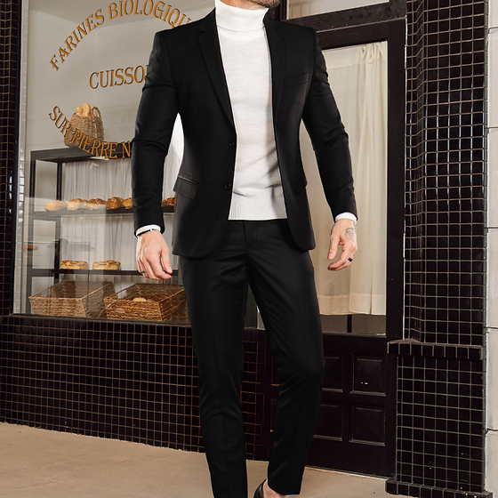 Traje negro de corte Slim fit, la elección perfecta para quienes buscan lucir elegantes y a la moda en cualquier ocasión. Este traje de dos piezas incluye un blazer de 2 botones que se adapta a tu figura, brindando un ajuste cómodo y estilizado. Confeccionado en Pañoliviano de alta calidad y forrado en poliéster, garantiza durabilidad y un look impecable. Ideal para eventos formales, bodas o reuniones importantes, este traje combina perfectamente con una camisa blanca y unos zapatos elegantes. ¡Prepárate para impresionar y ser el alma de la fiesta con este sofisticado traje negro que no puede faltar en tu guardarropa!